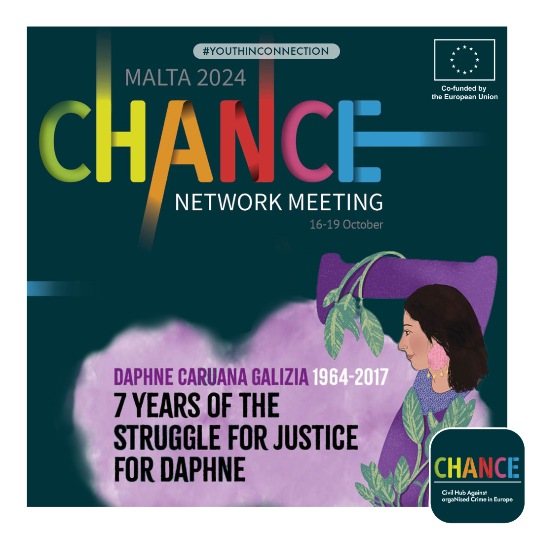 A Malta, dal 16 al 19 ottobre, la rete CHANCE e il progetto Youth In Connection si sono uniti per commemorare Daphne Caruana Galizia e riaffermare l’importanza di un’ Europa che protegga i suoi cittadini dalla corruzione e dall’infiltrazione della criminalità organizzata. In questi quattro giorni di iniziative, i rappresentanti di CHANCE hanno partecipato a diverse attività, tra cui una veglia in memoria di Daphne nel lugo in cui la giornalista ha perso la vita a Bidnija, una manifestazione per chiedere che venga fatta giustizia a Valletta e una serie di dibattiti con attivisti locali e internazionali. Questi momenti sono stati fondamentali per sottolineare come la lotta contro il crimine organizzato sia una battaglia che travalica i confini nazionali e che necessiti del sostegno di tutta la società civile europea.