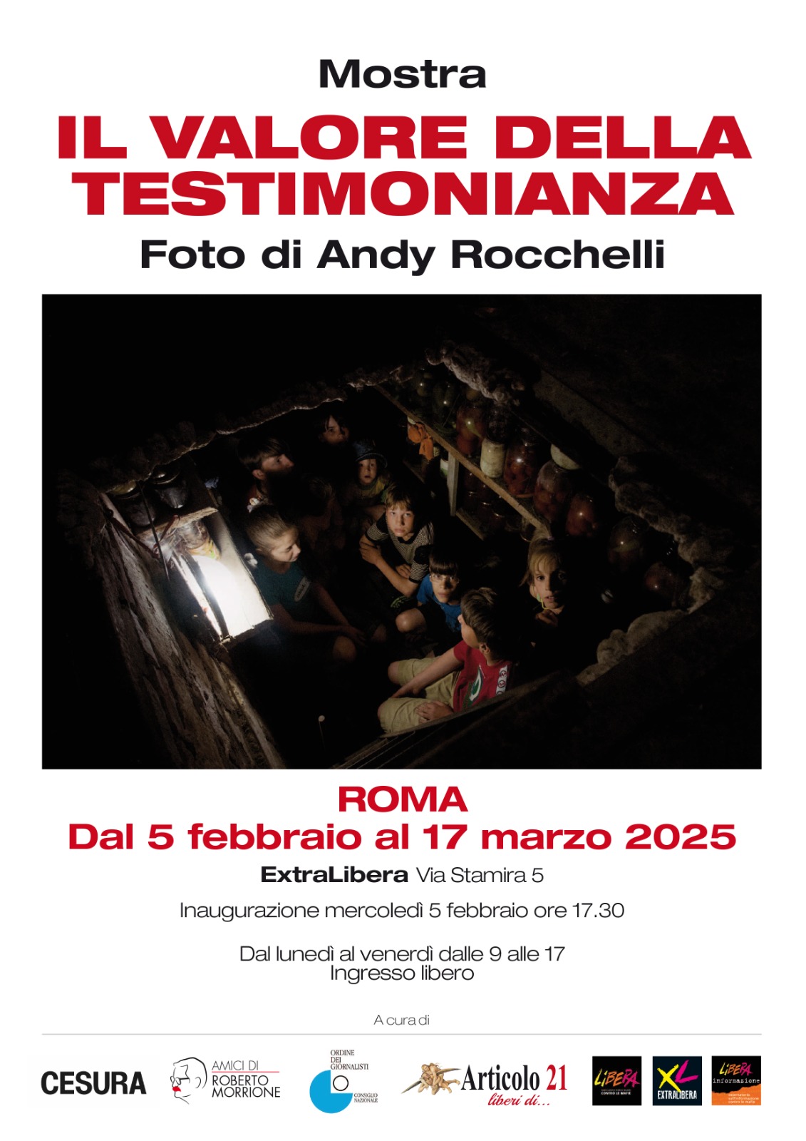 Dal 5 febbraio al 17 marzo, presso ExtraLibera, in via Stamira 5 a Roma, sarà possibile visitare la mostra fotografica Il valore della testimonianza, con gli scatti realizzati da Andy Rocchelli, fotoreporter ucciso in Ucraina nel maggio 2014.