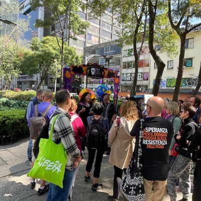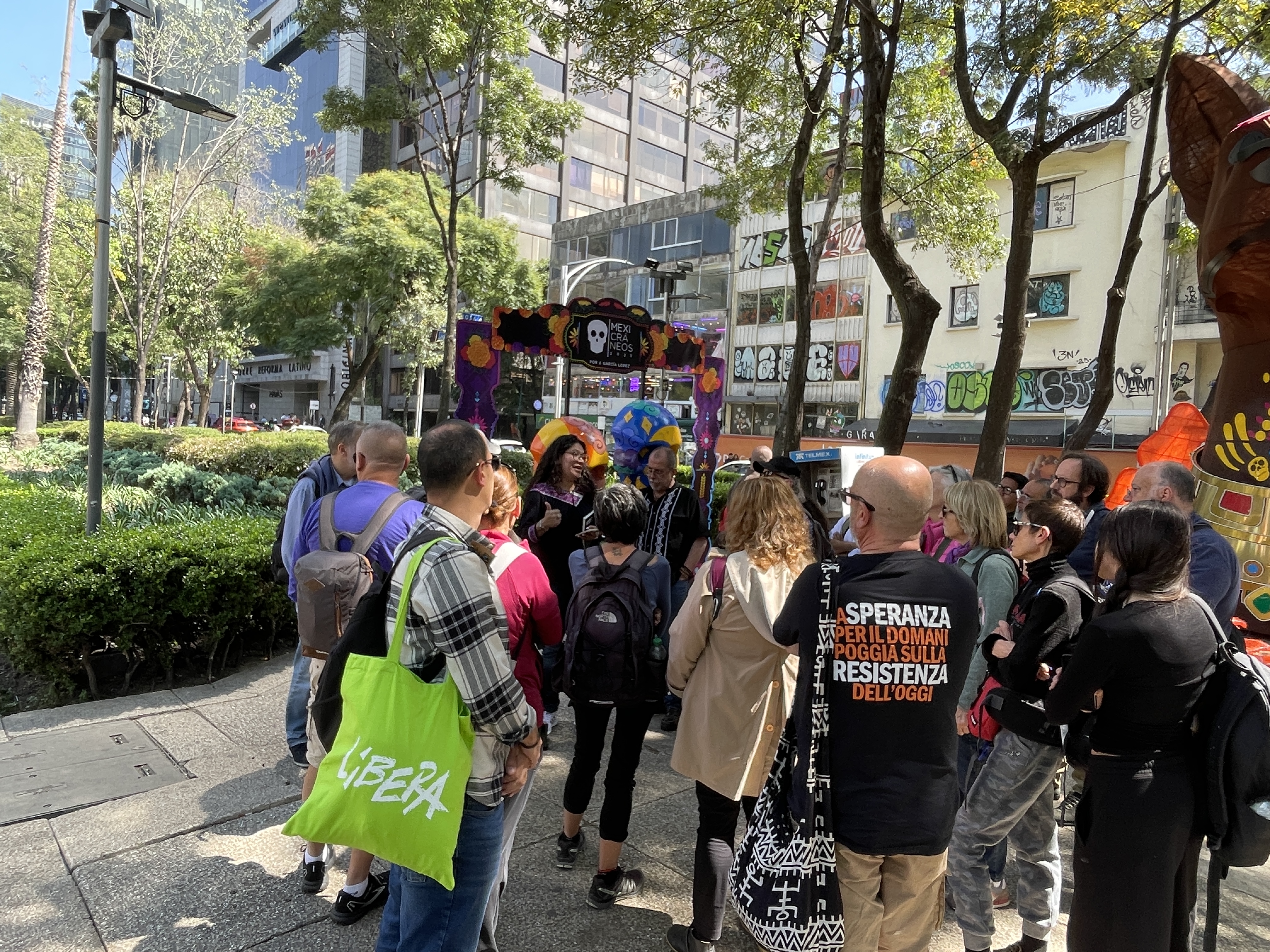 Inciampiamo su Puebla, prima di arrivare a Tlaxcala, città che si svela a fatica, difficile da inquadrare a prima vista. Anche qui viene in nostro soccorso lo IESDA — Instituto deEstudios Superiores Dante Alighieri — dove la suggestione dell’incontro sta nella sintesi che emerge dalle parole di attiviste, giovani studentesse e studenti nel raccontarci il Messico e le sue complessità sociali, economiche e politiche, toccando tematiche delicate come la parità di genere, la lotta alle disuguaglianze, il diritto al dissenso, la partecipazione e le pari opportunità.